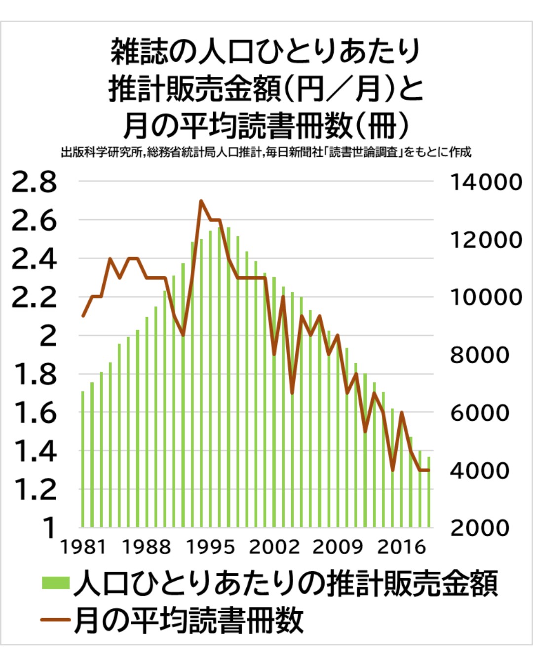 ただし、「読まなくなっており、買わなくもなっている」が日本で該当する出版カテゴリーもある。雑誌がそうだ。