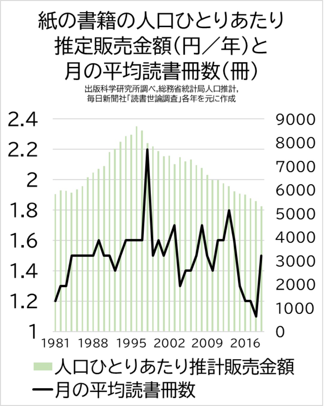 出版市場が成長していた時代にも、書籍の読書量が増えていたわけではない。書籍は、読書量と購買量の傾向が一致しない。
