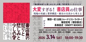 今度のイベントにも関係しているある人から(名前を出していいか確認を取っていないので伏せる)「『書店員』とひとくちに言っても、店の規模や担当ジャンル、任せられている裁量が店によって全然違うから、意外と同じレベル感で話ができる人がいない」と聞いた。