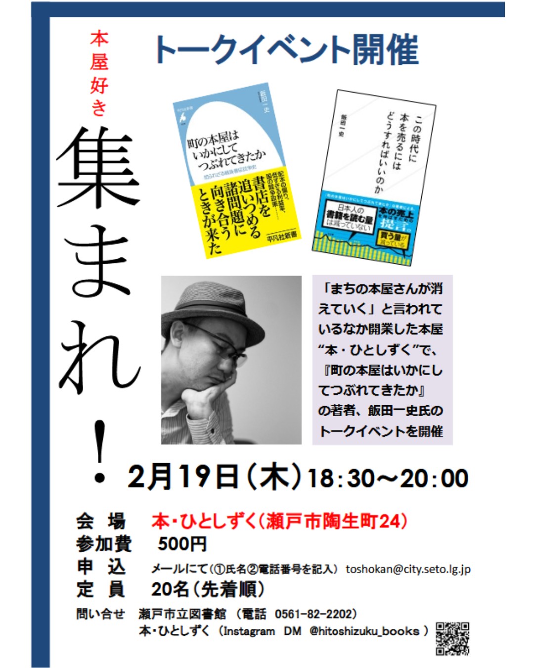 愛知県瀬戸市の独立系書店「本・ひとしずく」さんで2月19日夜にトークイベントをします。ぜひお申し込みください。テーマは「本で地域をもりあげる、地域で本を支える」です。このイベントは「書店と図書館の連携」の一環で行われますが、もっとひろげて「本と地域」をむすびつけている事例を国内外問わず紹介します。「あ、そんなのやっていいんだ」「おもしろそう」と感じてもらって、何かやりたくなるような話ができればと思っています。